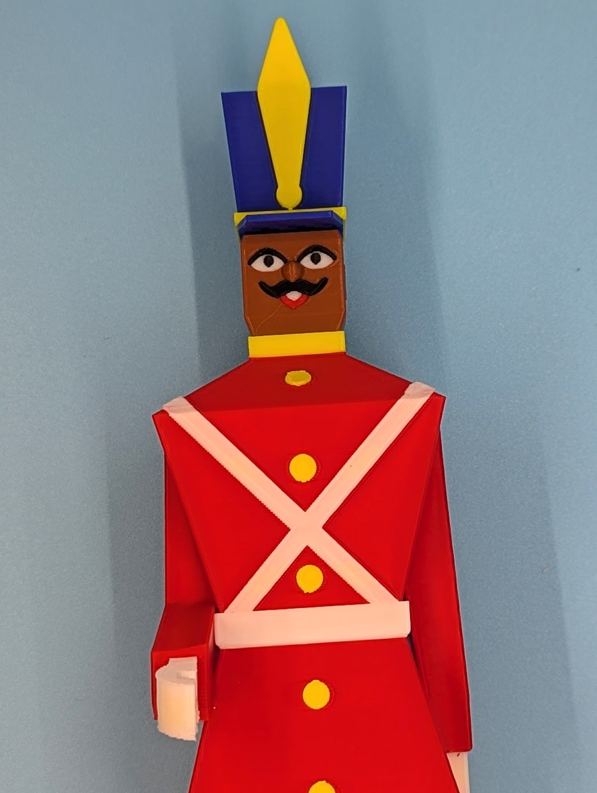 Nothing says the holidays in Framingham like the wooden soldiers that go up around the city every year. Here's your chance to take home your very own for your mantle or tree. These are 3D printed in multi-color plastic. Each soldier comes attached to a base with "Framingham" written on it and the current year. On the back of the base is written the years from which they were standing at Shoppers World.